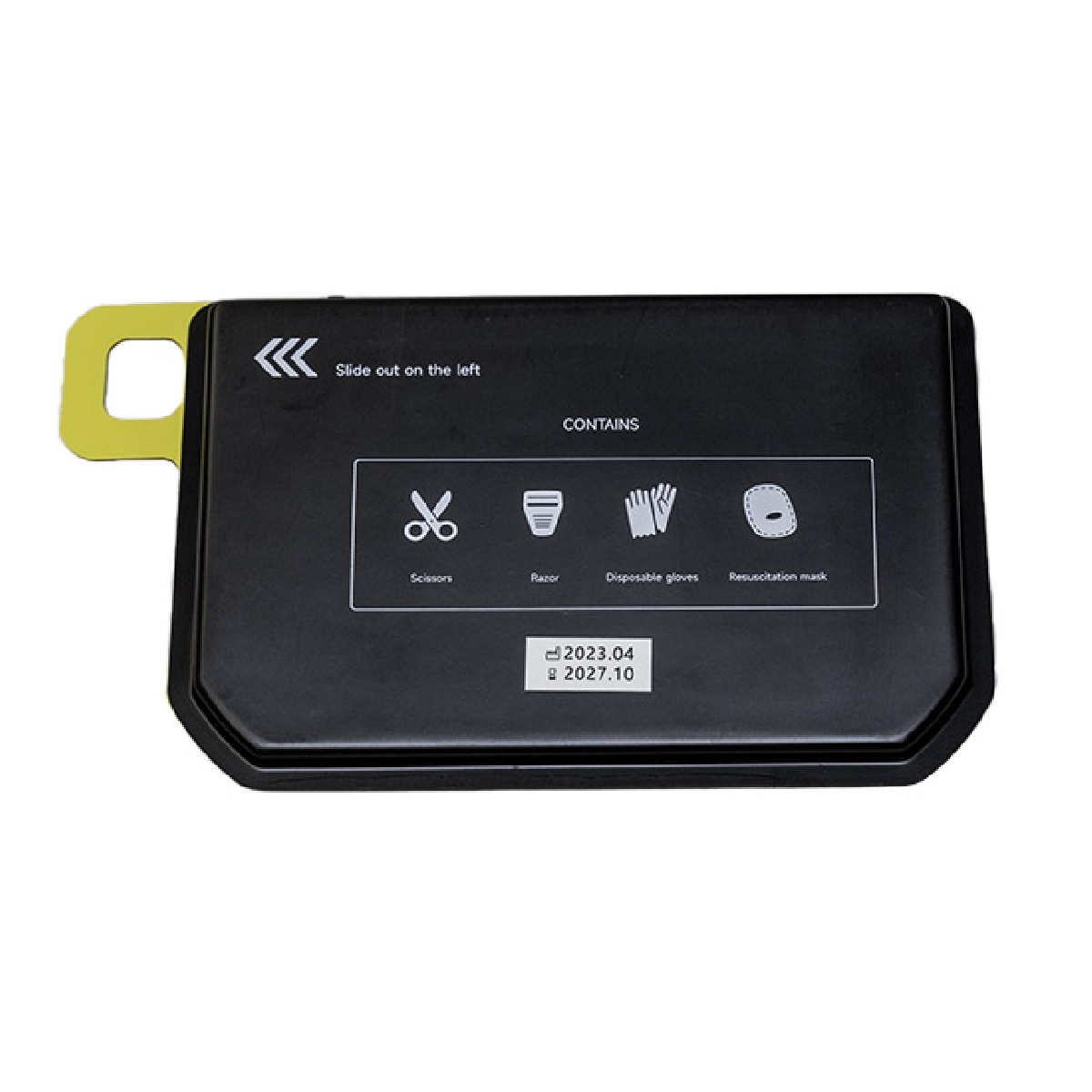 – Wstępnie podłączone elektrody dla jak najszybszej opieki nad poszkodowanym.