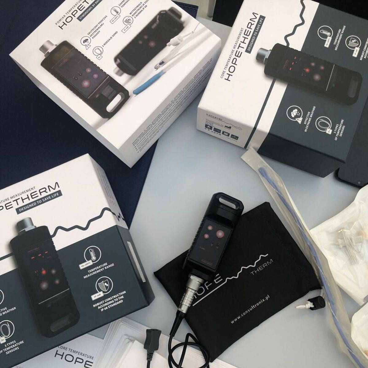Termometr HOPETHERM do pomiaru temperatury głębokiej HOPETHERM to lekkie, przenośne, i bardzo wytrzymałe urządzenie diagnostyczne zapewniające wiarygodny pomiar temperatury centralnej.
