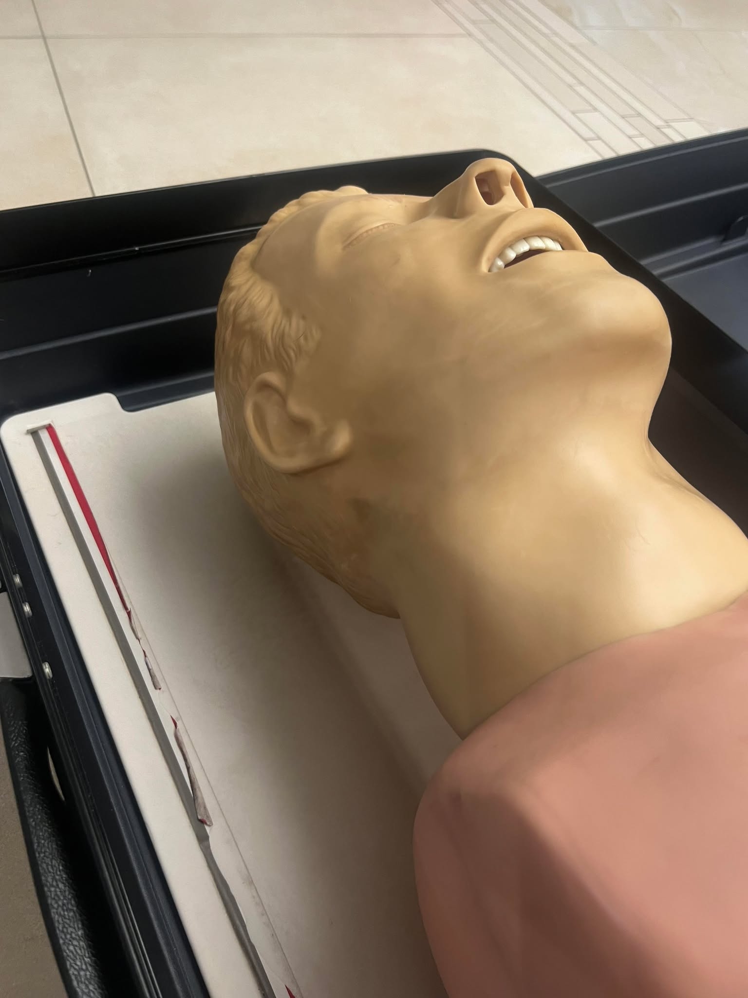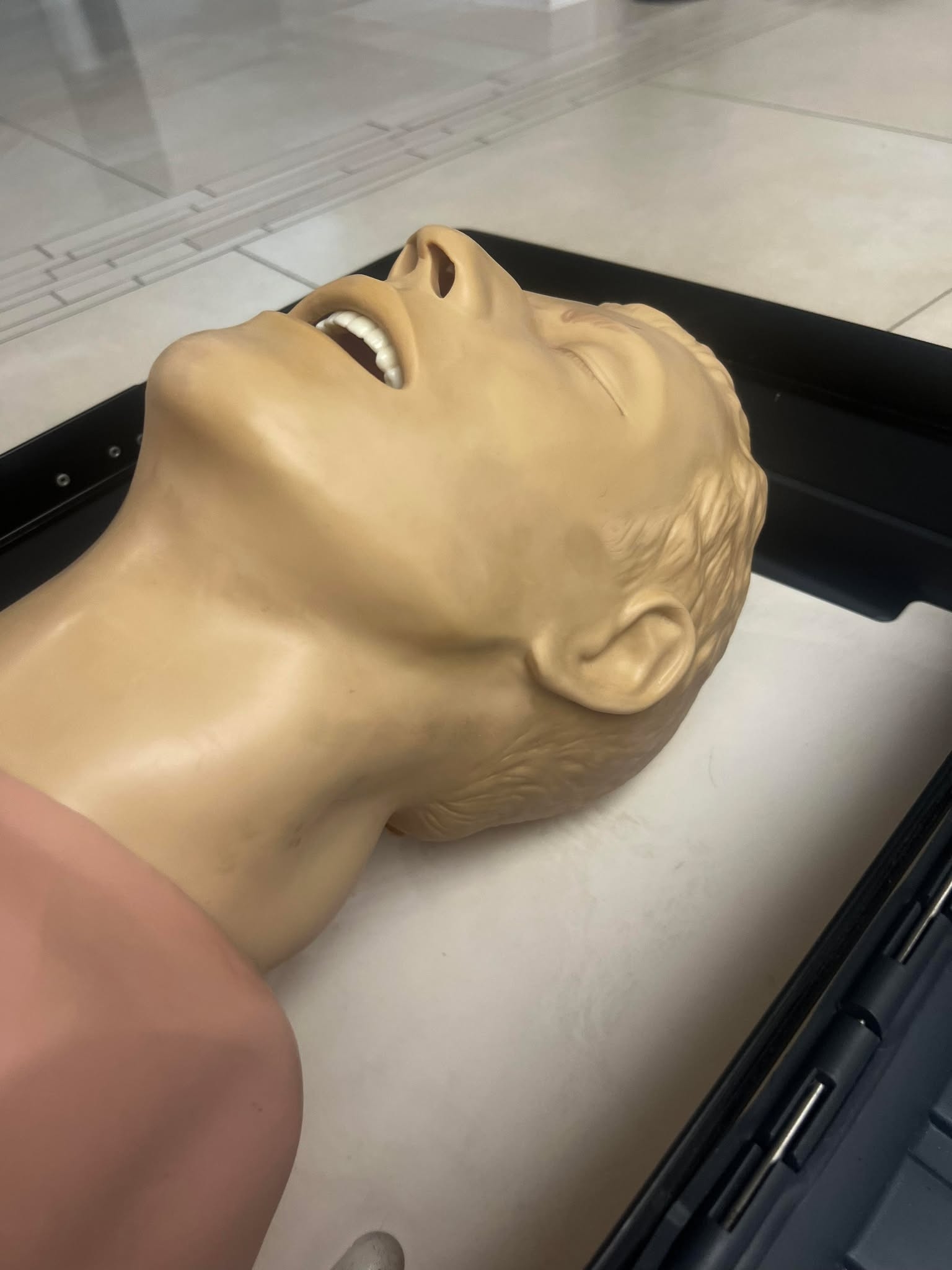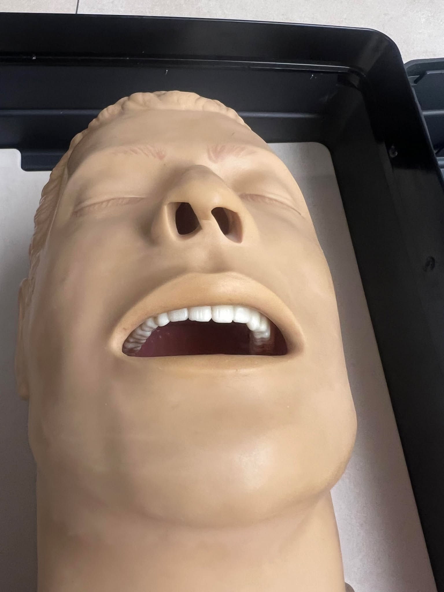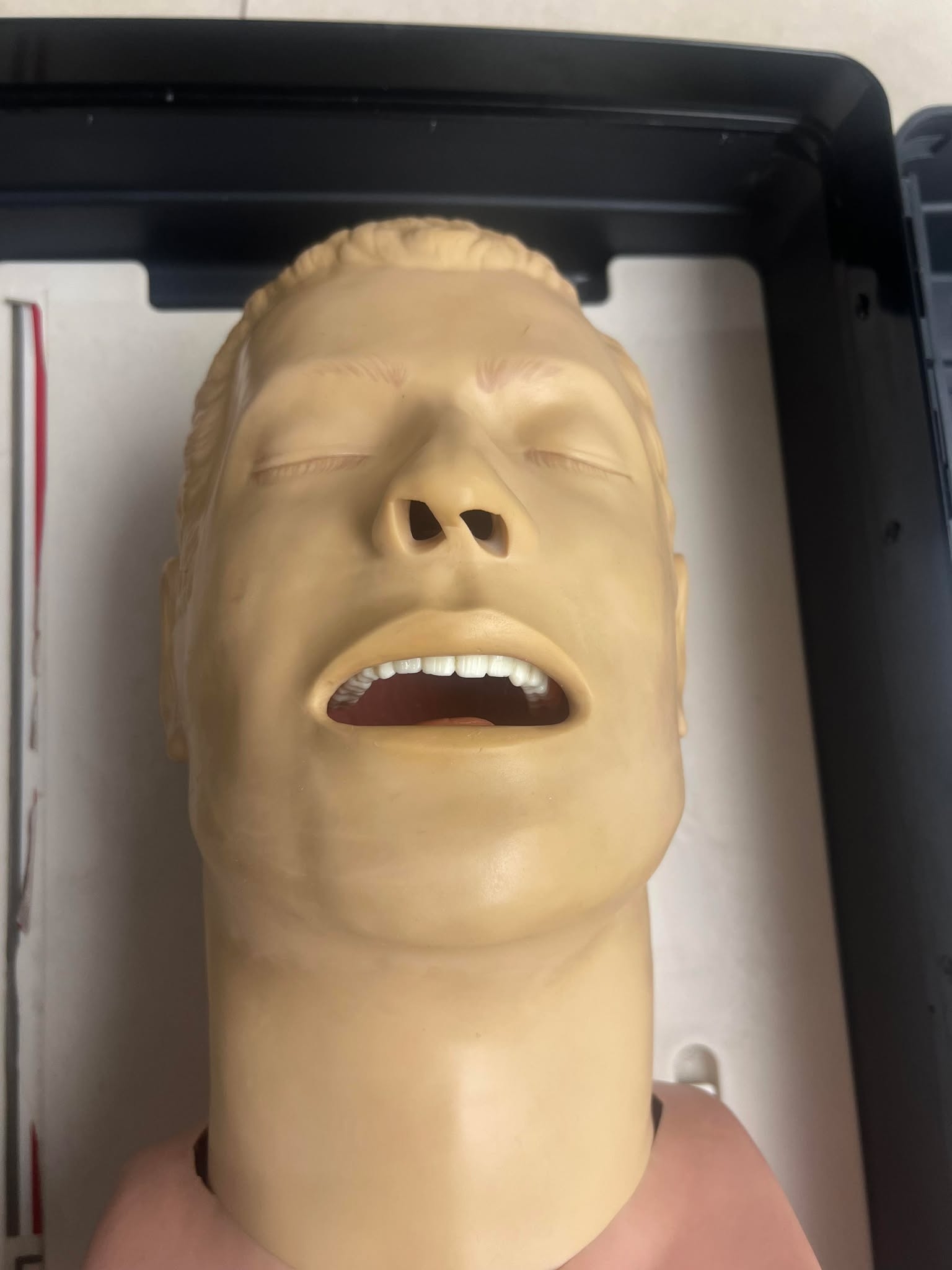 Trenażer udrażniania dróg oddechowych u osób dorosłych – Laerdal Airway Management Trainer w dobrej używanej kondycji jak na foto.