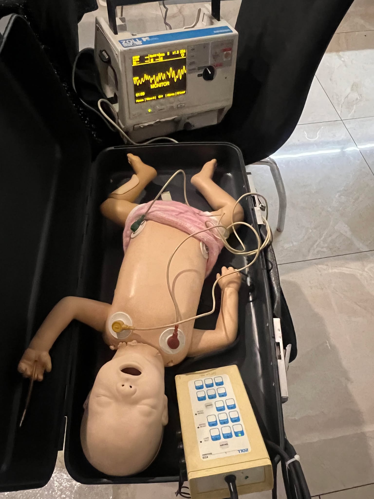 ALS Baby Trainer 200 – manekin do nauki zaawansowanej resuscytacji niemowląt w raz z symulatorem HeartSim 200. Laerdal PALS Baby oferuje wyjątkowy realizm ćwiczeń z zakresu zaawansowanej resuscytacji niemowląt, w tym postępowania z drogami oddechowymi (intubacja), pośredniego masażu serca i sztucznej wentylacji, wkłuć doszpikowych i monitorowania EKG.