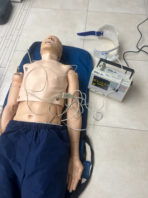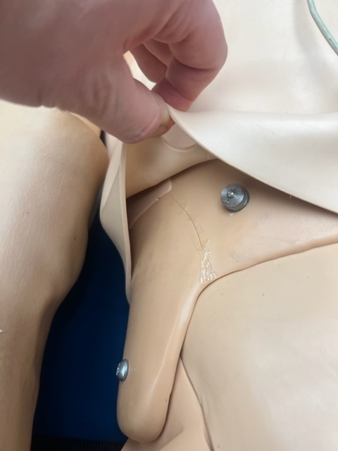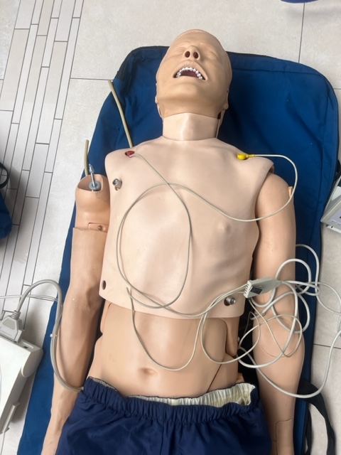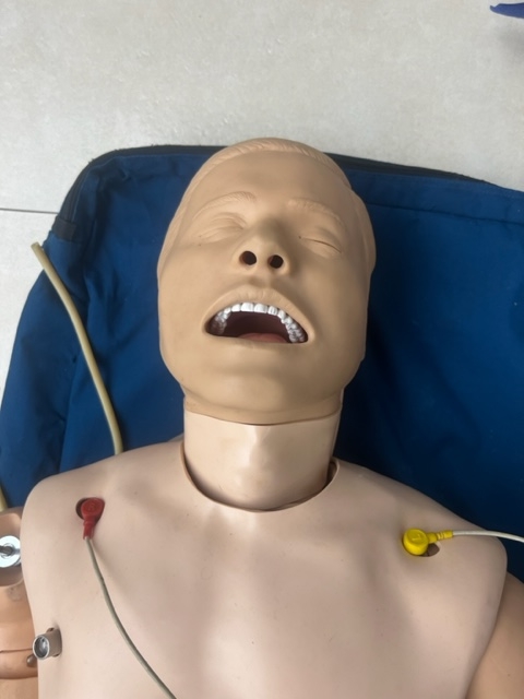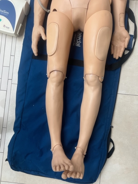 Uwaga: Manekin posiadał wcześniej pęknięcia torsu (grubego plastiku) podczas transportu. Zostały one sklejone i nie wpływają na funkcjonalność ani na jakość symulacji.
