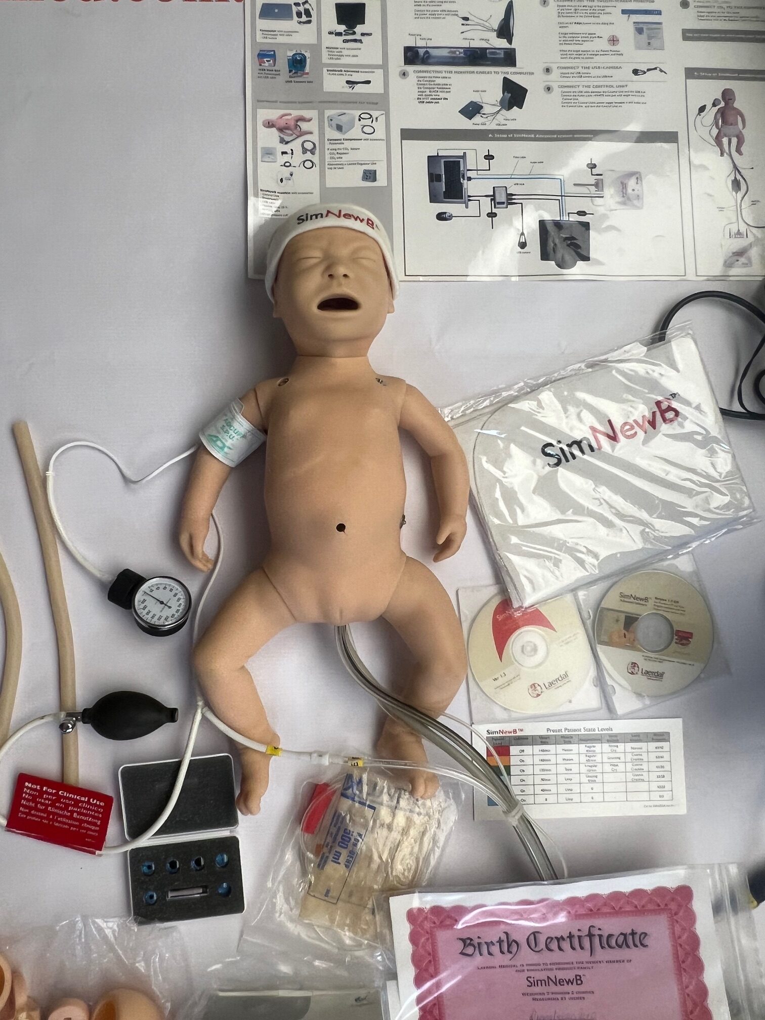 Laerdal Symulator Sim NewB to symulator noworodkowy stworzony we współpracy z Amerykańską Akademią Pediatryczną, zaprojektowany, aby pomóc udoskonalić resuscytację noworodków i spełnić określone cele nauczania w zakresie protokołów resuscytacji noworodków.