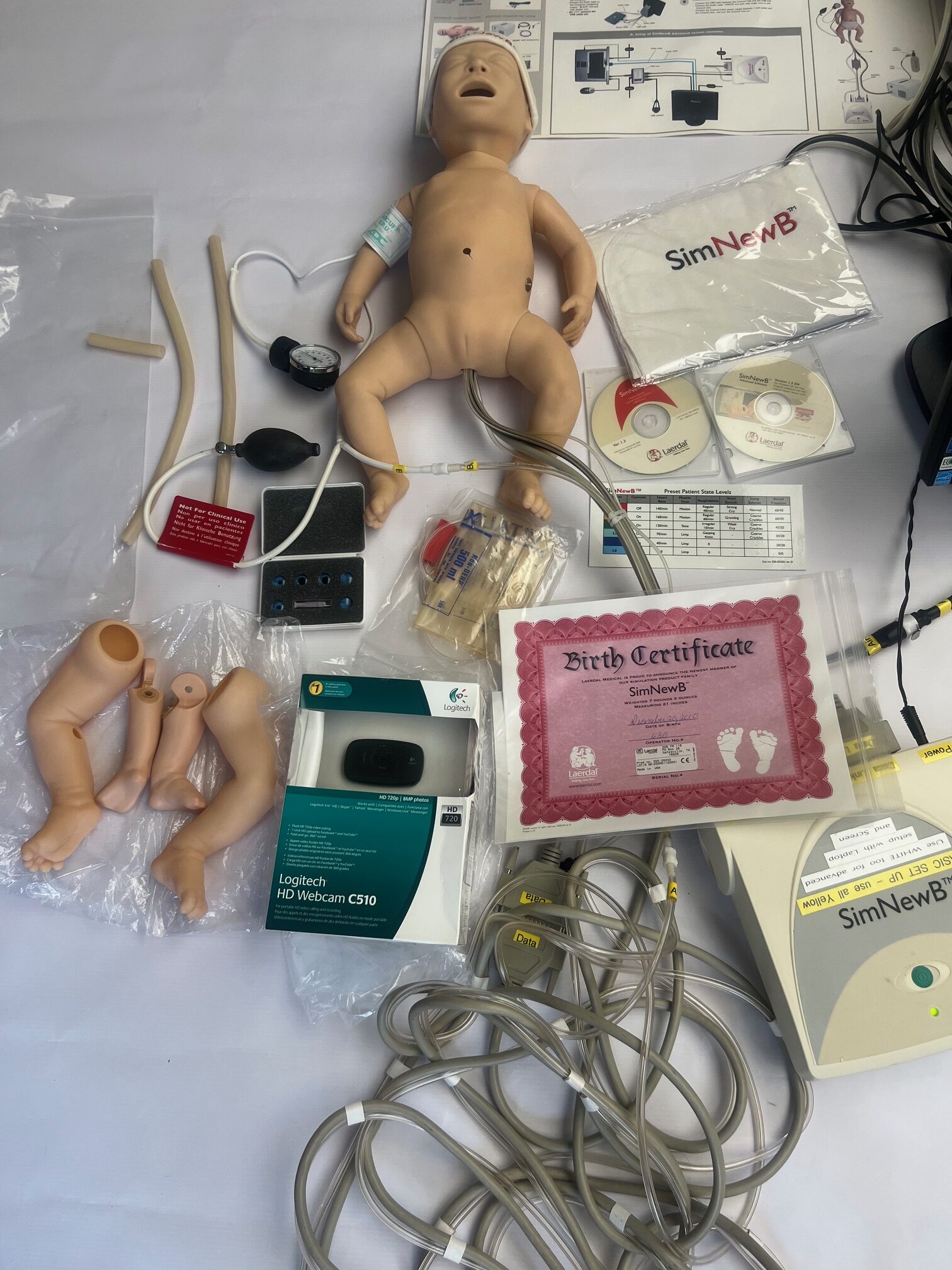 Laerdal Symulator Sim NewB to symulator noworodkowy znanej firmy LAERDAL. Symulator jest po przeglądzie serwisowym. Rozbudowany zestaw szkoleniowy na pewno spełni oczekiwania najbardziej zapalonych adeptów medycyny.