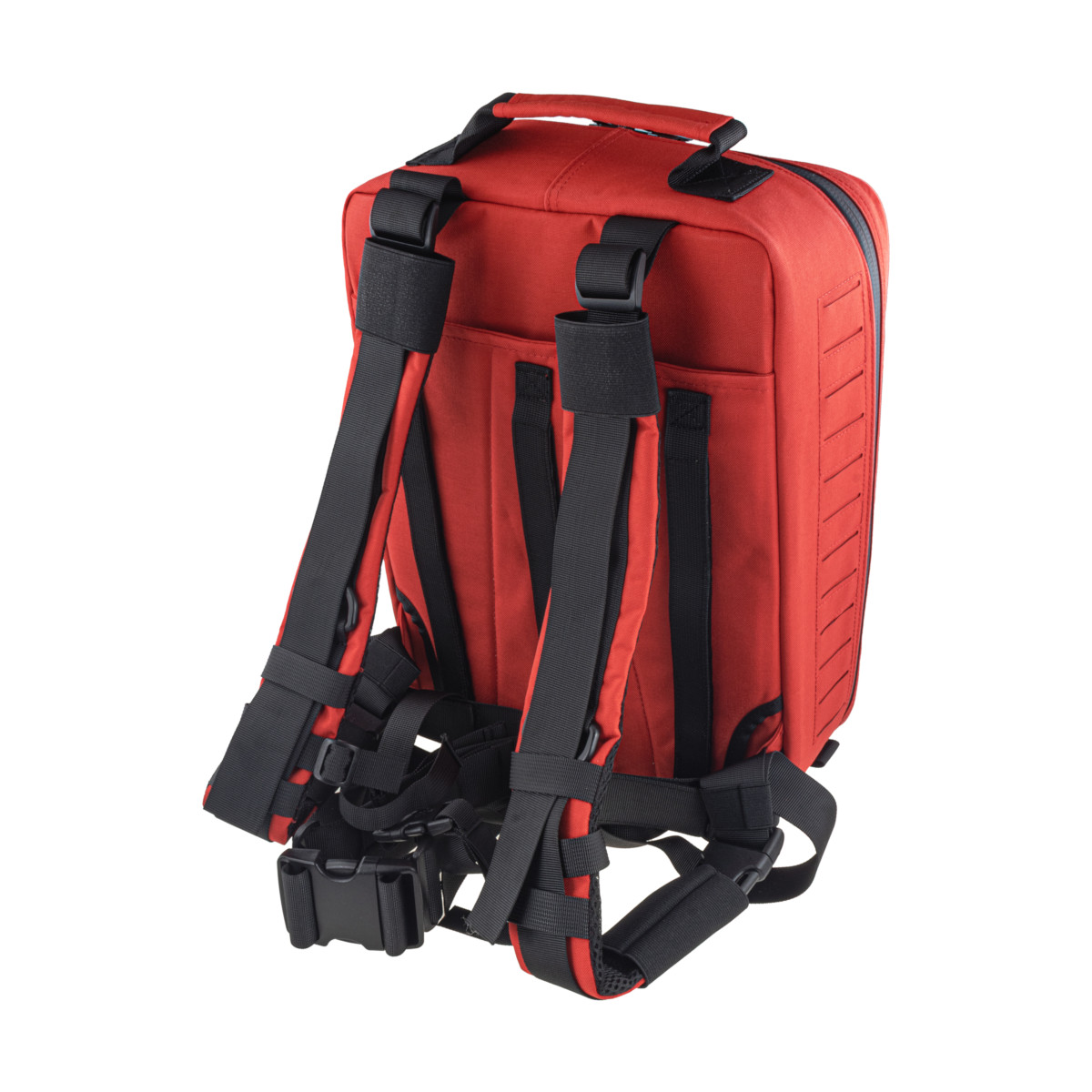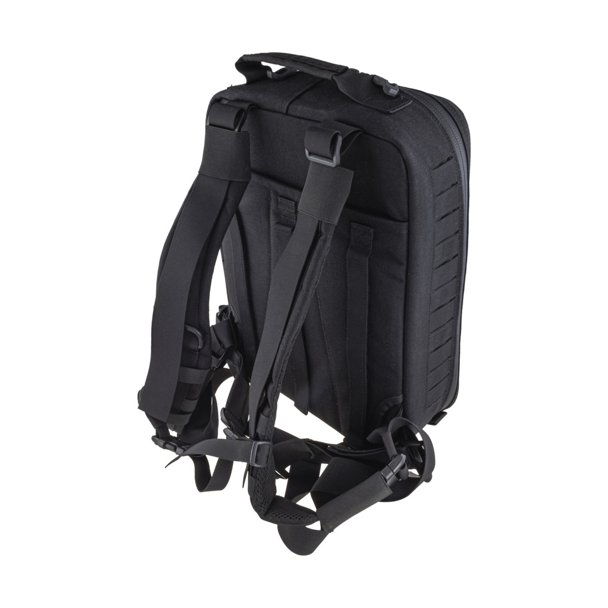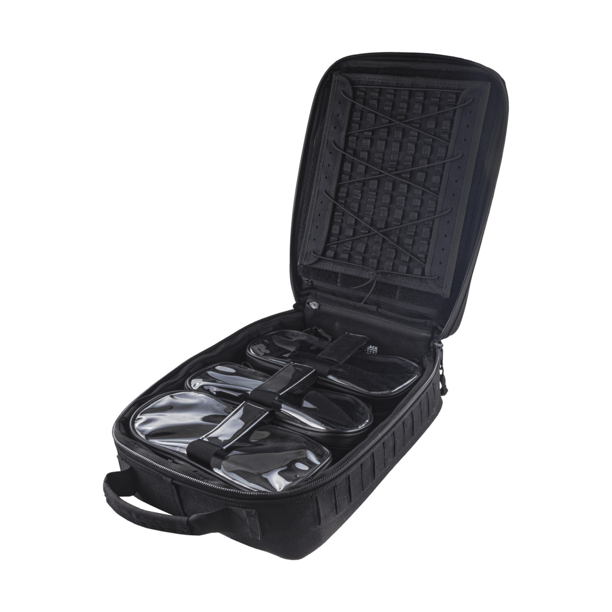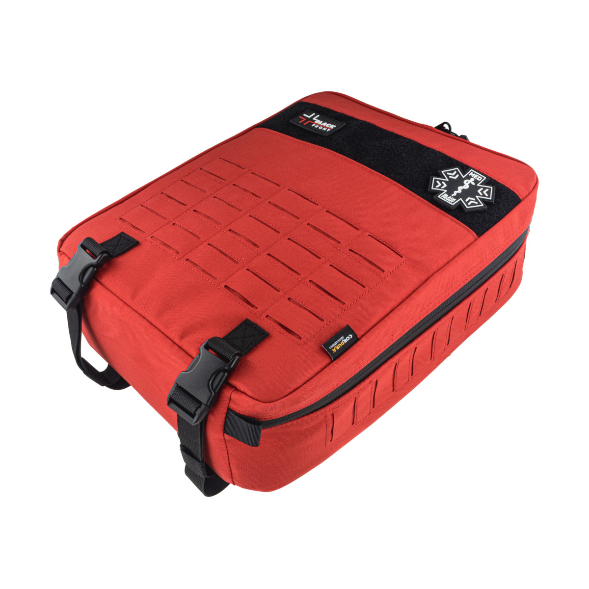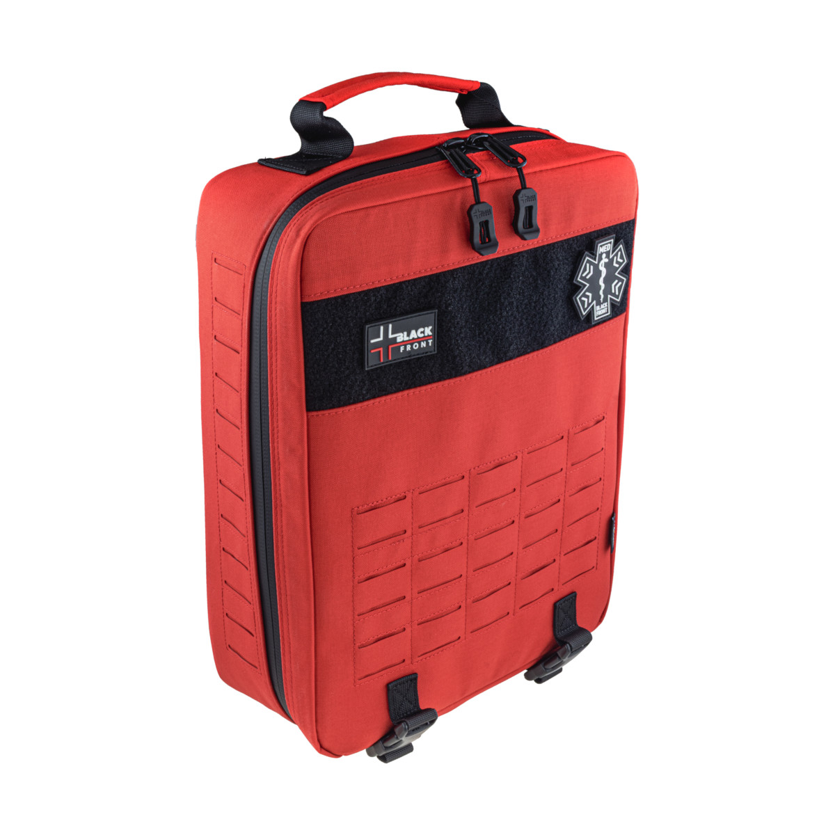 Plecak SBTR GEN2 jest elementem systemu Trauma Responder marki Black Front i może pracować samodzielnie lub w zestawie z: LBTR (duży plecak), TR (duża saszetka) oraz PTR (mała saszetka osobista). Montaż odbywa się w standardzie PALS/MOLLE z Laser Cut, co pozwala swobodnie skalować konfigurację.