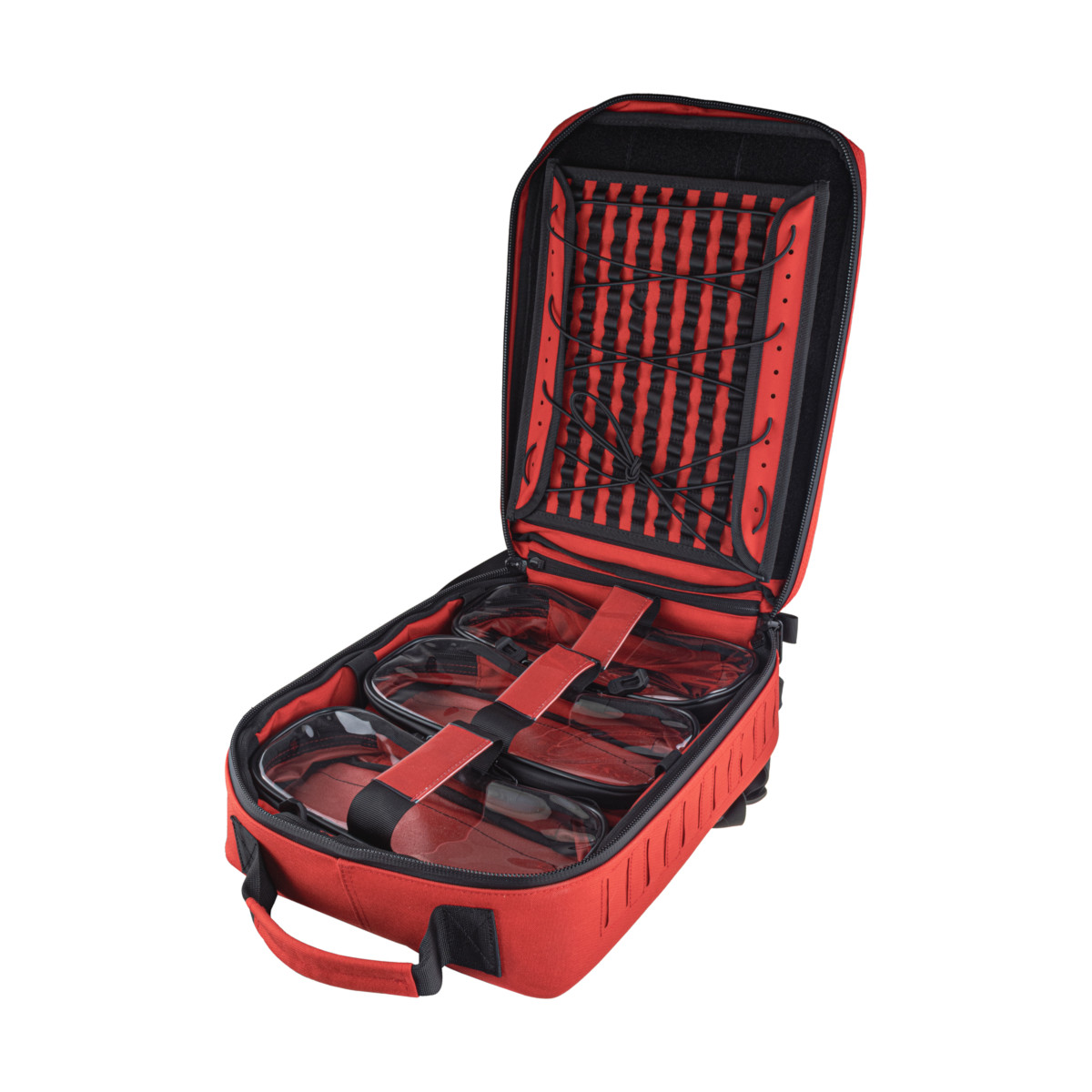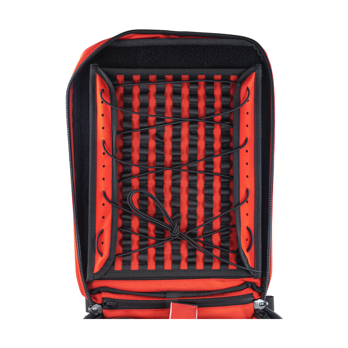 - Rzep wewnątrz komory i na dnach saszetek – stabilizacja i zabezpieczenie przed wypadaniem przy otwartym plecaku.