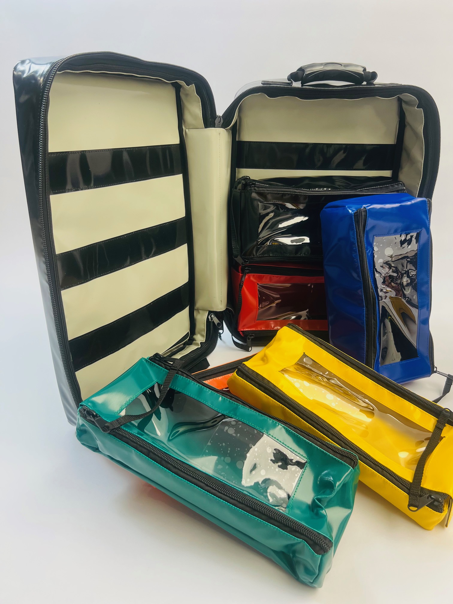 Torba wykonana z trwałego, wodoodpornego materiału. Posiada konstrukcję jednokomorową przystosowaną do mocowania na rzep licznych torebek wewnętrznych, ułatwiając właściwą segregację sprzętu. Plecak jest wyposażony w 2 uchwyty transportowe do przenoszenia w ręku, które rozmieszczone są w sposób umożliwiający transport w pozycji pionowej.