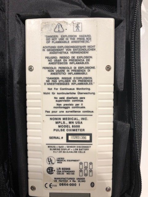 Pulsoksymetr Nonin 8500 + etui w dobrym czystym stanie z czujnikiem napalcowym dla osoby dorosłej !! Przebarwienia na plastiku w kilku miejscach!!