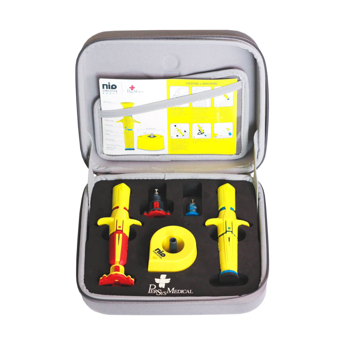 Zmniejszona długość trokara i kaniuli pozwala użytkownikom nie tylko uczyć się, ale także doświadczać wyznaczania punktów orientacyjnych i rozmieszczania NIO Simulation™ Adult lub NIO Simulation™ Pediatric na manekinach symulacyjnych, a także na innych użytkownikach (tylko NIO Simulation™ Adult)”.